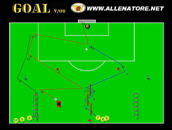 – dupa un set de repetari (ex. 4 centrari din stinga / jucator), se executa din partea dreapta centrarile