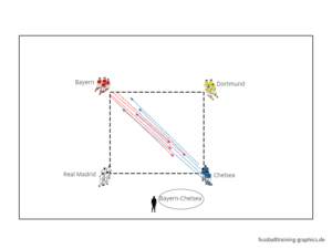 Joc „poarta – linie” 5×5 (7×7) jucatori De pe linia portii pina la linia galbena (5m), se aplica regula ofsaidului Se joaca din 2 atingeri Numar nelimitat de atingeri in zona de ofsaid Punct valabil la trecerea mingii cu talpa peste linia portii Antrenorul are la dispozitie mingi pentru a mentine ridicata intensitatea exercitiului