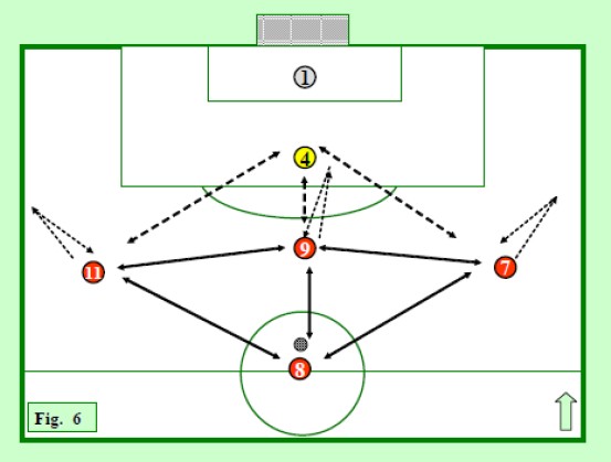 Suprafata: ½ din terenul de joc Nr.jucatori: 5 Materiale: maieuri in doua culori, mingi [ihc-hide-content ihc_mb_type=”show” ihc_mb_who=”2″ ihc_mb_template=”3″ ] Descriere: – Cei 4 jucatori in rosu paseaza intre ei din doua atingeri fara presiune, simulind „contramiscari”, apel-contraapel – Sarcina jucatorului in galben este de a se deplasa si presa intr-o maniera pasiva, in functie de traseul mingii,jucatorii care…
