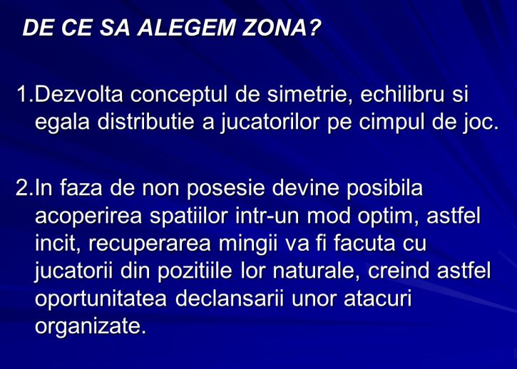 - Se va pune accentual pe dezvoltarea individuala si pe imbunatatirea calitatii jocului si nu pe obtinerea de rezultate cu orice pret