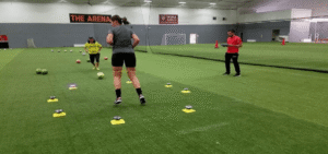 Jucatorii vor fi indrumati sa execute cu ambele picioare, inainte, inapoi, spre stinga, spre dreapta, in viteza si mentinind capul sus.